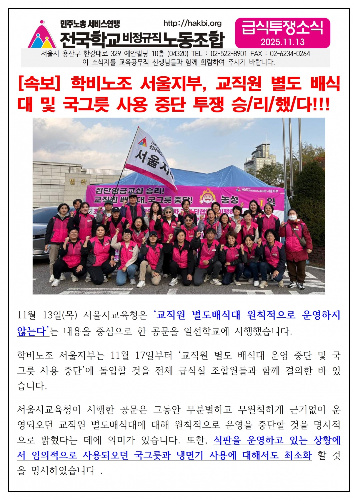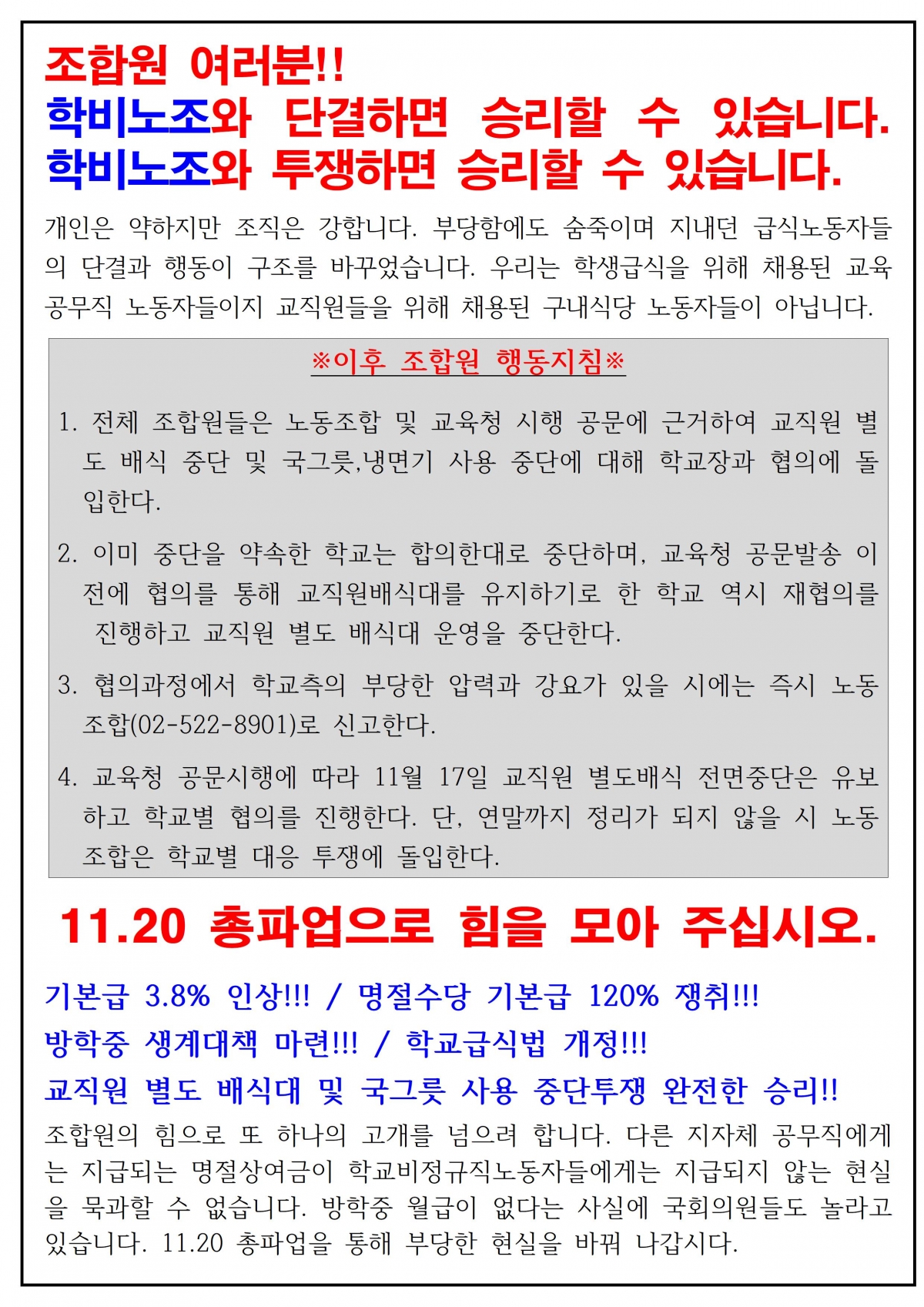 교직원 식당(별도 배식대 배식 및 국그릇 제공 거부 투쟁