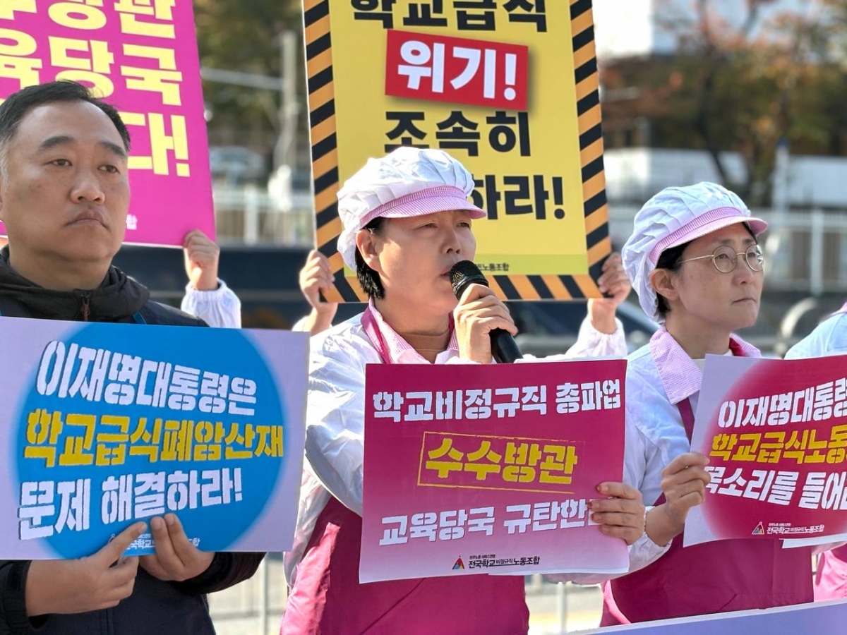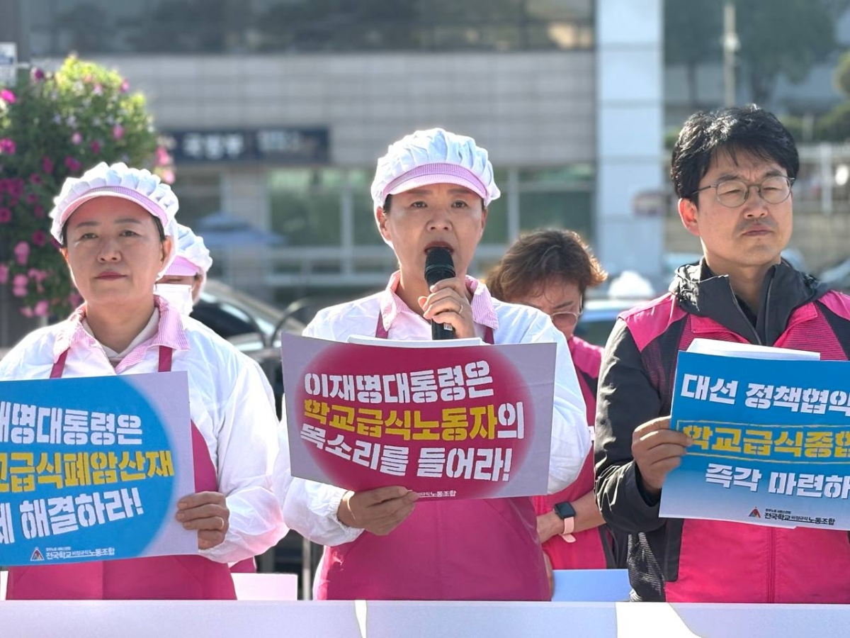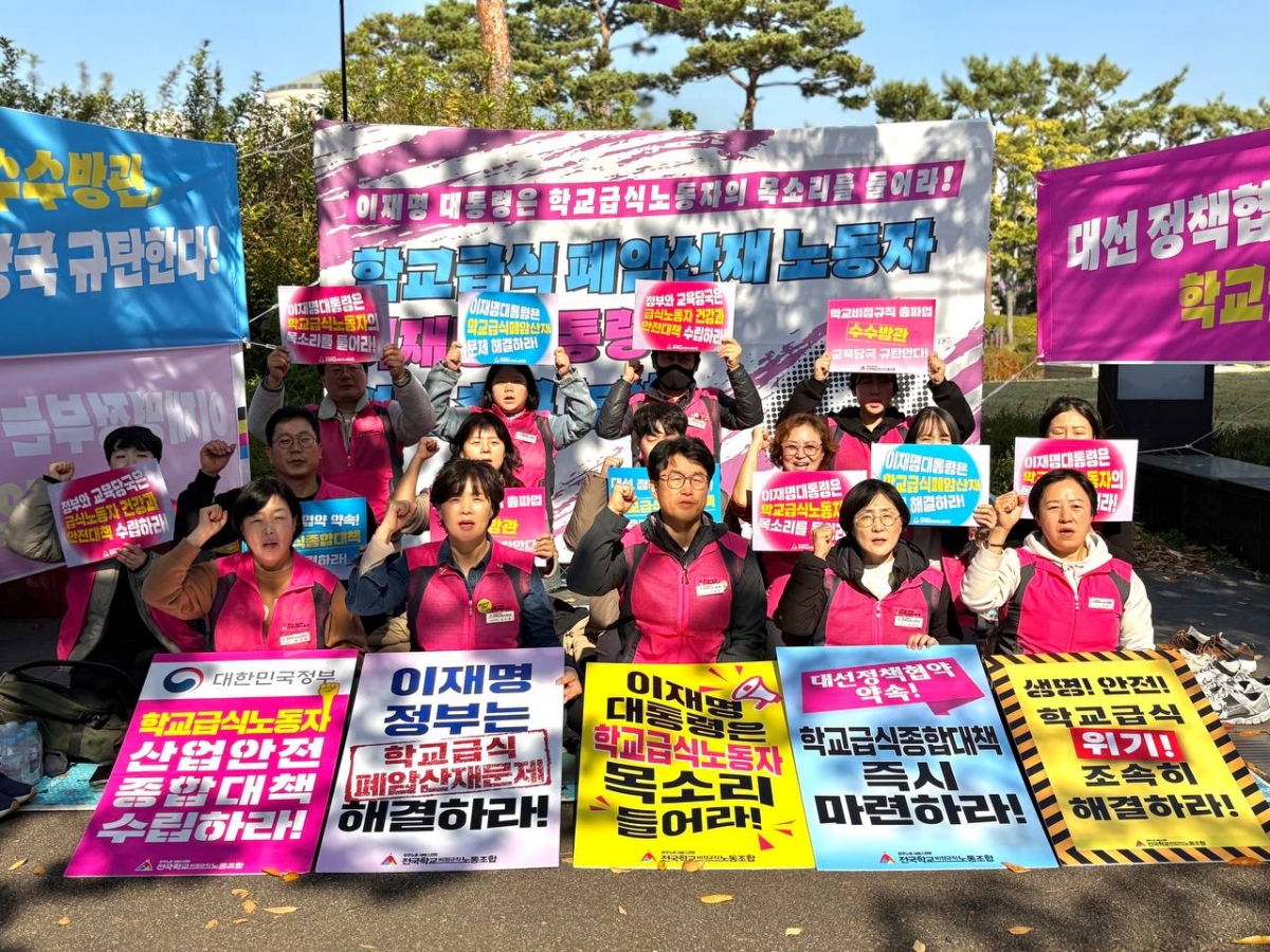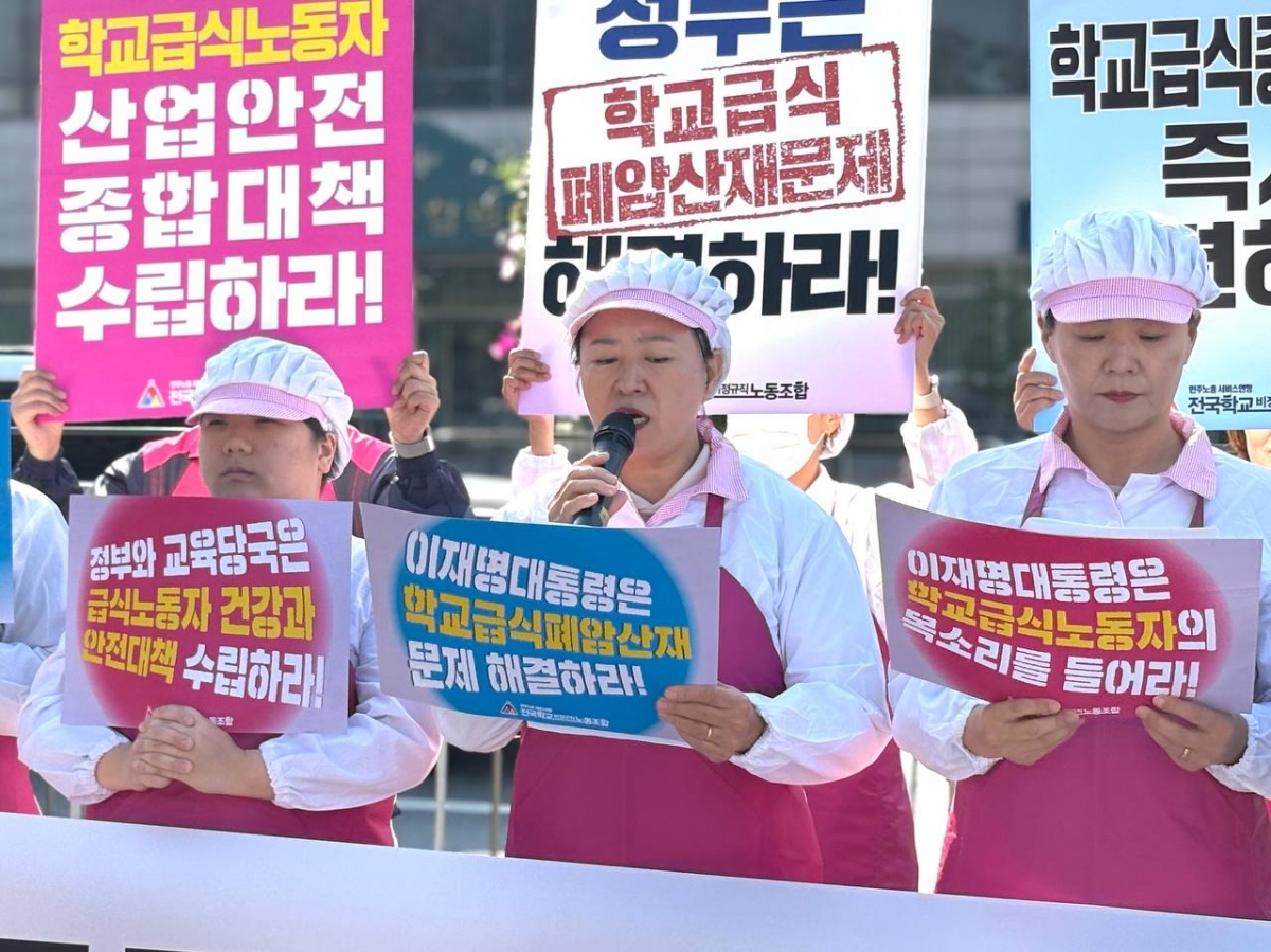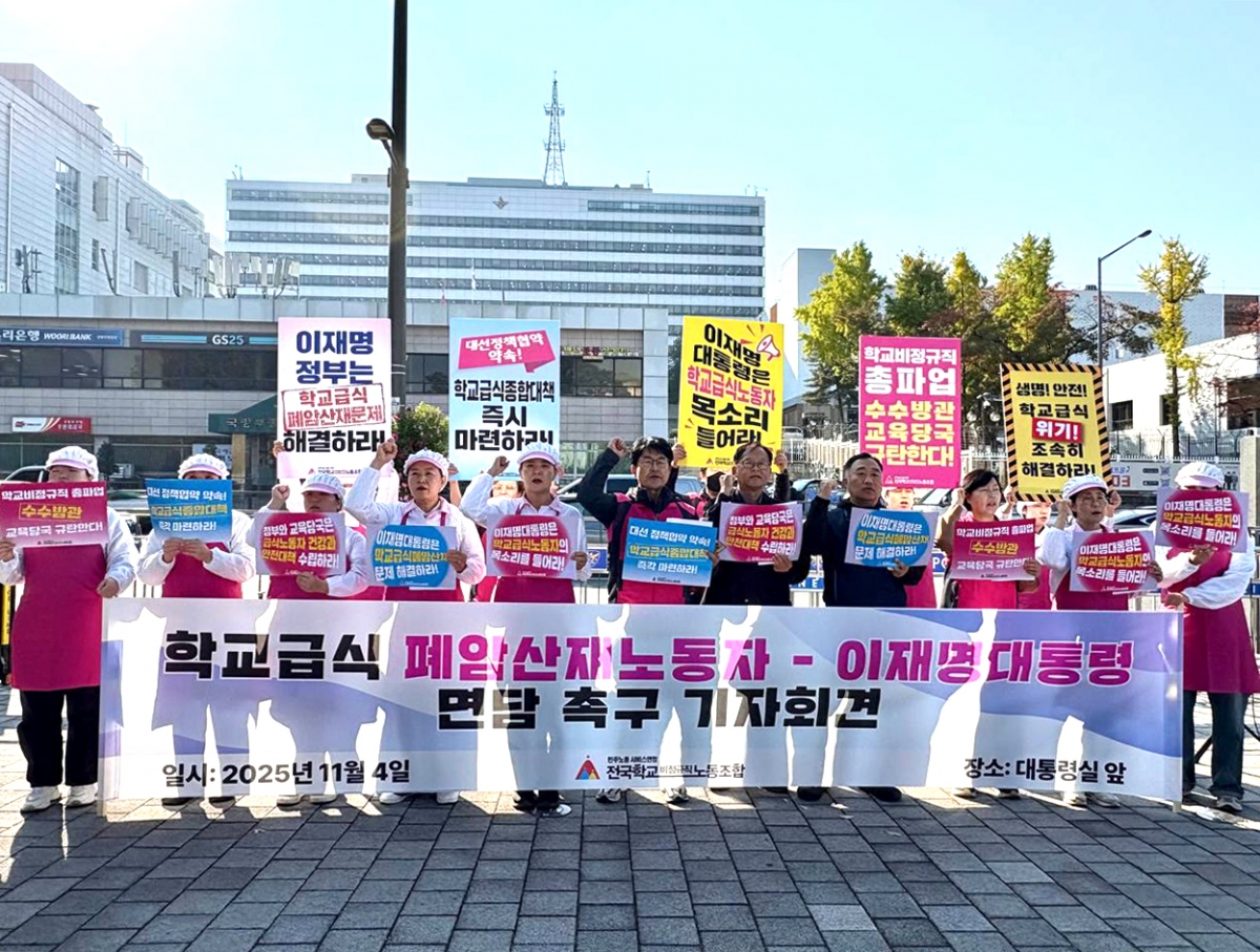 전국학교비정규직노동조합은 오늘(4일) 용산 대통령실 앞에서 “학교급식 폐암산재 노동자 – 이재명 대통령 면담 촉구 기자회견”을 진행했다.