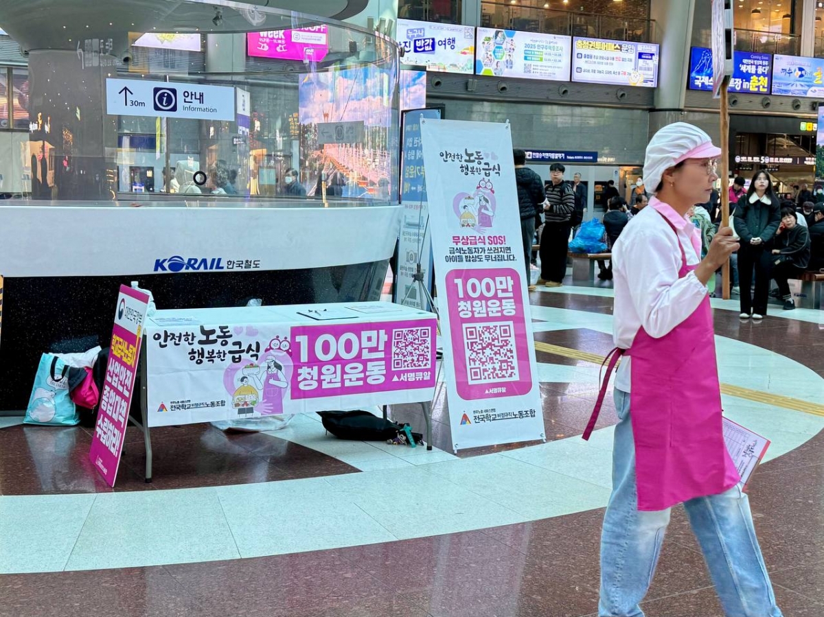 이후 매일 아침 선전전과 학교급식종합대책 마련, 대통령 면담 등을 요구하며 집단 108배를 진행했다. 또한 용산역 등지에서 “‘안전한 노동 행복한 급식 100만 청원’ 서명운동도 이어갔다.