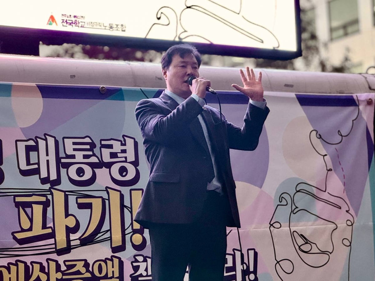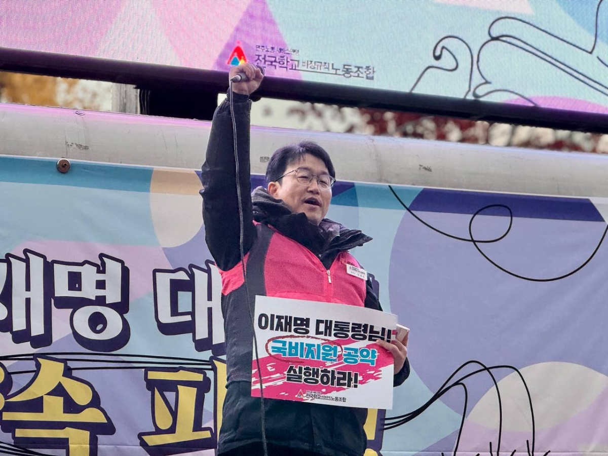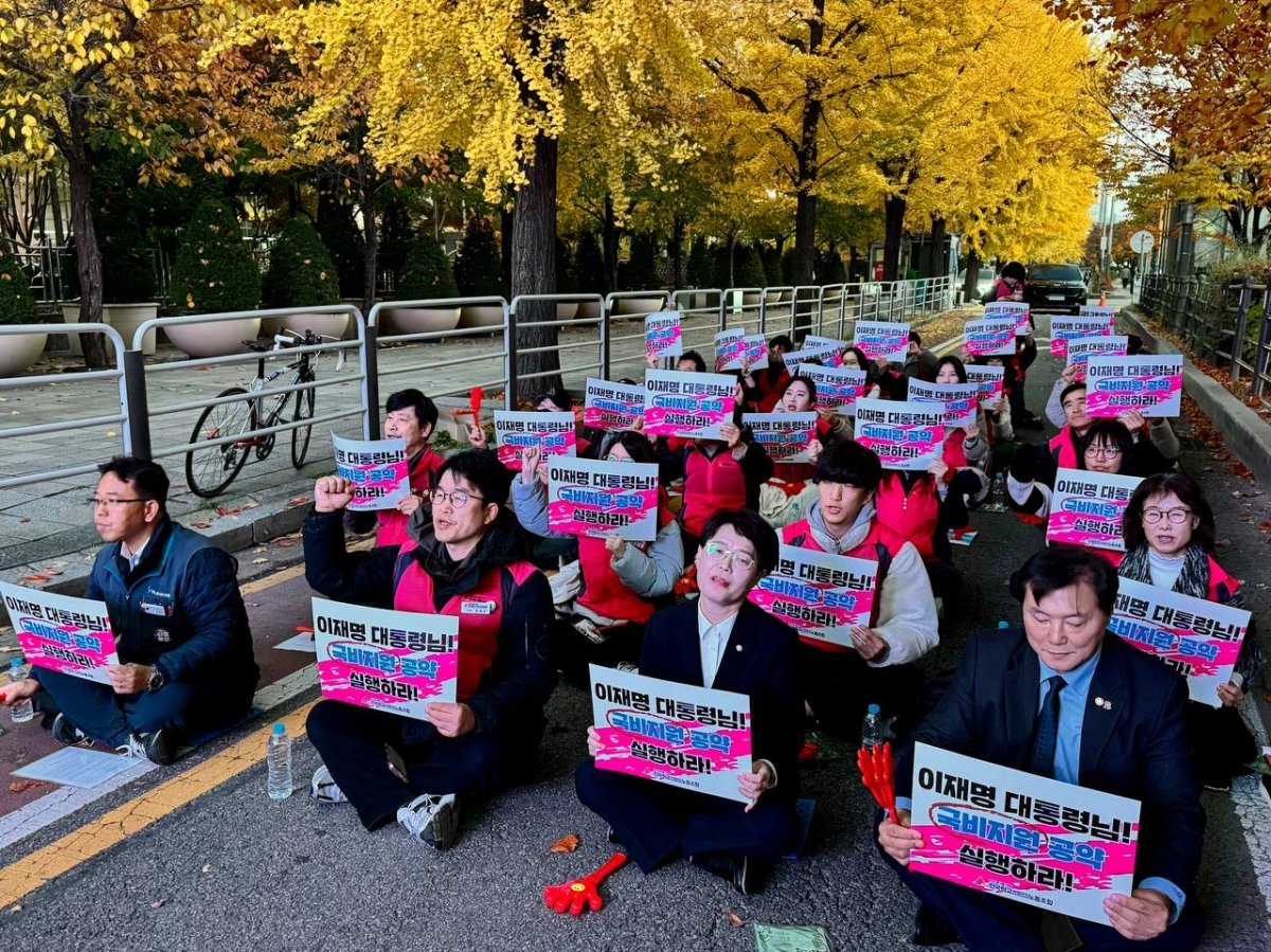 전국학교비정규직노동조합은 지난 12일 국회 앞에서 이재명 대통령의 약속 파기, 국회가 예산증액 책임져라! 학교예술교육 예산증액 촉구 예술강사 결의대회를 진행했다.