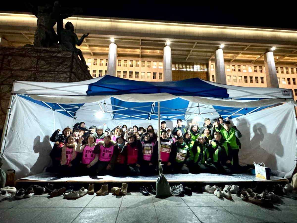 전국학교비정규직노동조합 등 전국학교비정규직연대회의는 지난 5일 여의도 국회의사당 앞에서 4차 총파업에 돌입했다. 경남지부, 경북지부, 대구지부, 부산지부, 울산지부가 4차 총파업에 결합했다. 학교비정규직 차별해소 예산과 학교급식법 개정 촉구를 위해 11월 10일부터 국회 앞 노숙농성을 진행하고 있는 연대회의는 학교급식법 개정안 통과를 위한 마지막 호소로 대표단 단식농성에 돌입했다.