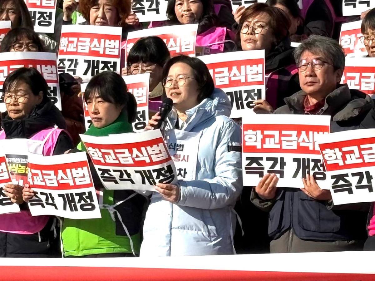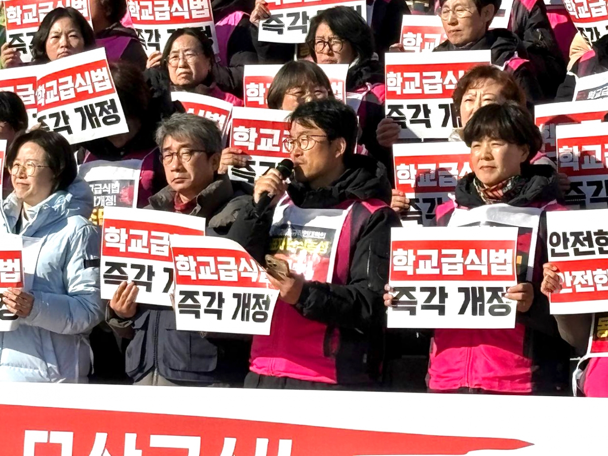 전국학교비정규직노동조합 민태호 위원장은 “30만명이 넘는 시민들과 급식, 학부모, 농업, 시민 단체들이 (학교급식법 개정 촉구)서명에 동참했다”며 “더 이상 밥 하는 아줌마가 아니라 k-급식의 생산 주역임을 인정해 주길 바란다”고 학교급식법 즉각 개정을 촉구했다. 진보당 정혜경 국회의원은 ”국회가 주도권을 갖고 정부의 무책임성 직무 유기를 질타하며 적극적으로 입법권을 행사해야 한다”며 “차별 없는 사회를 꿈꾸고 물려주고자 했던 친환경 무상급식 운동과 국민의 염원을 기억해 달라”고 호소했다.
