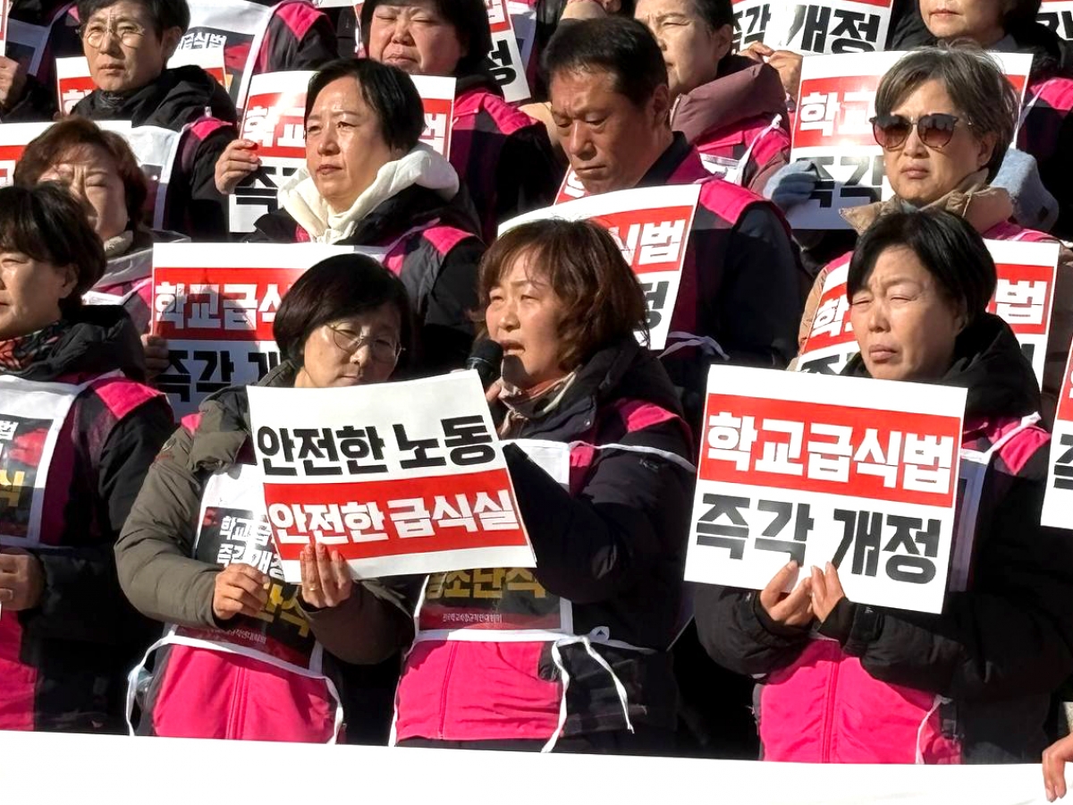 전국학교비정규직노동조합 등 전국학교비정규직연대회의는 지난 8일 국회 본관 계단에서 “22대 국회 학교급식법 즉각 개정 촉구 국회 기자회견”을 시작으로 법안 통과를 위한 집중투쟁에 돌입했다. 4일 간 이어진 릴레이 총파업의 핵심 요구 중 하나는 학교급식노동위기 해결을 위한 학교급식법 개정안 통과다. 지난 8일, 국회 교육위원회 법안소위 학교급식법 개정안 심의를 앞두고 학비연대회의는 대규모 기자회견과 개정 촉구를 위한 108배. 300여명의 동조 단식단, 선전전, 결의대회까지 진행하며 전면 투쟁에 나섰다.