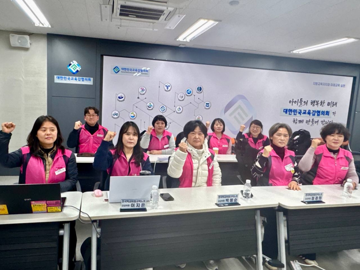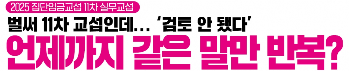사측, 갖은 핑계로 책임 회피하며 ‘거부’ 집단임금교섭 11차 실무교섭이 오늘(15일) 세종시 교육감협의회 회의실에서 진행되었다. 사측은 합의가 끝난 ‘지방공무원과 급식비 인상 동일하게 적용’ 문구를 제외한 채, 고작 1만 원 인상안을 내놓았다. 직접 작성해 수용했던 안조차 스스로 부정하며 교섭 파행의 책임을 자초한 셈이다. 명절휴가비 정률제에 대해 사측은 "검토가 안 되어 어렵다", "이미 나온 안이 작년 인상액보다 높아 어렵다", "임금체계 개편이 어떻게 될지 모르니 큰 변동은 어렵다"며 거부만을 반복했다. 사측은 반복된 정회 후에도 협의점을 찾지 못하고 답답한 답변만을 이어갔다. 노동조합은 3차 수정안으로 ▲명절휴가비 2유형 기본급 110% ▲기본급 1유형의 3.6%(82,000원 인상) ▲근속수당 급간액 사측 안 수용(1천원 인상), 상한 1년 확대 ▲급식비 1만 원 인상 (사측 안 수용)을 제시하며 해를 넘긴 집단교섭이 합의점을 찾기 위해 최선의 노력을 다 했다. 사측은 우리의 이러한 노력에 책임을 다 할 것을 촉구하며 교섭을 마무리했다. 해 넘긴 집단교섭! 교육감이 책임져라! 임금체계 개편으로 저임금 구조개선하라! 명절휴가비 정률제 적용하라!
