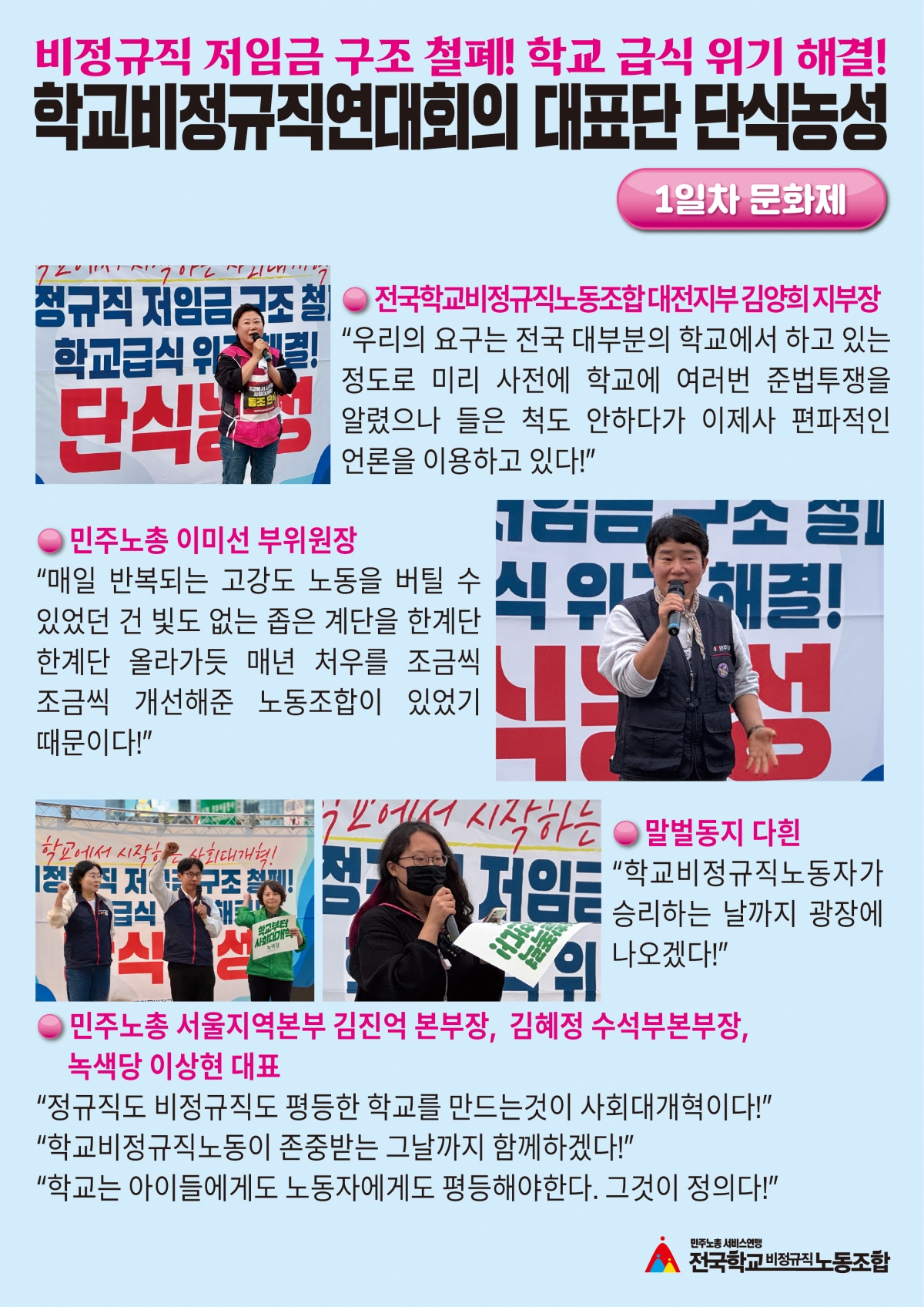 비정규직 저임금 구조 철폐! 학교 급식 위기 해결! 학교비정규직연대회의 대표단 단식농성 1일차