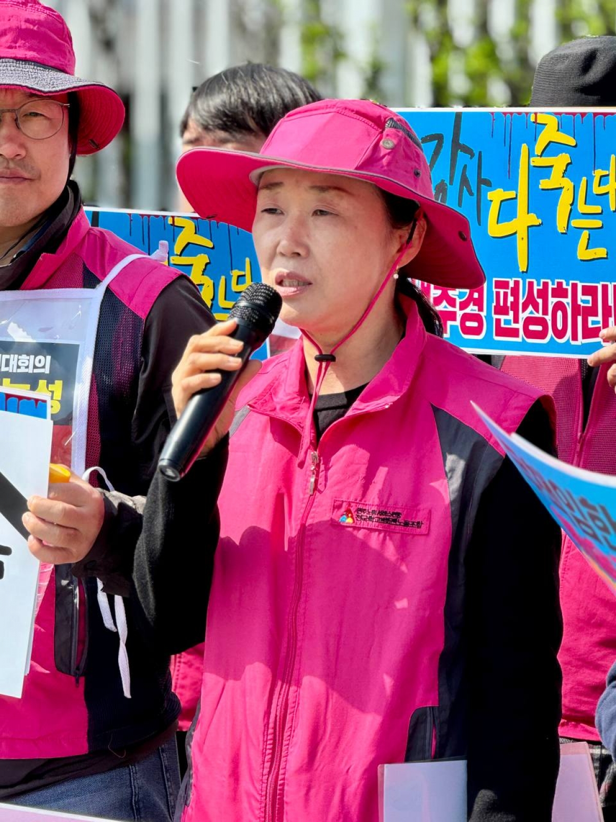 전국학교비정규직노동조합 경기지부 조은정 정책국장은 참석하지 못한 두 분의 예술강사를 대신하여 “문화예술교육은 단순히 예술을 가르치는 수업이 아니라 삶을 나누고 생명을 불어넣는 수업이다.”라며“암기는 AI에게 맡기고, 아이들의 유일한 호흡기인 예술교육을 제대로 받을 수 있도록 해달라.”며 호소하였다.
